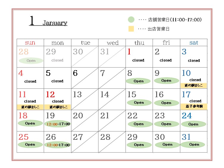 ★元旦(木)~1月7日(水)まで正月休みとなります。